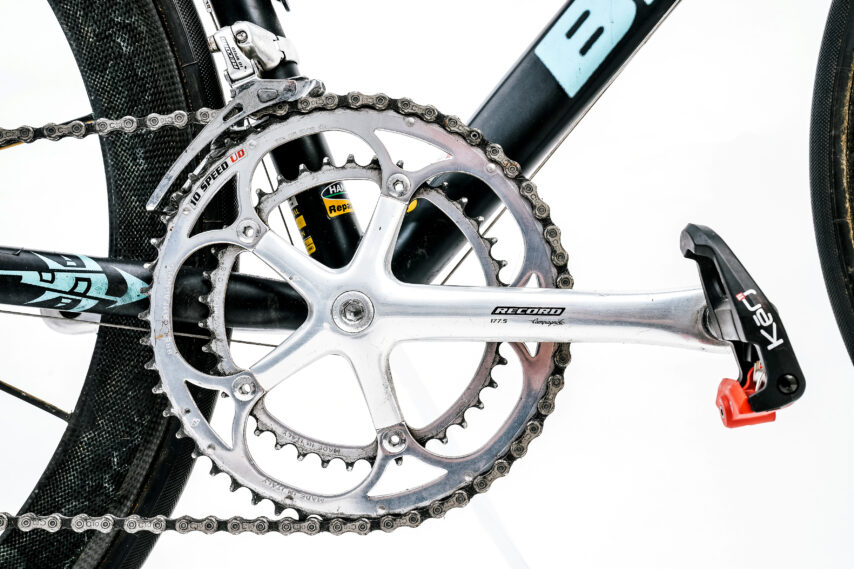 Team Bianchi reed met Campagnolo Record 10-speed 53/39, ITM-delen, Selle Italia-zadel, Time-pedalen, Vittoria-tubes en Mavic Ksyrium SL SSC-wielen. Voor de bergetappes stak Ullrich de iconische full carbon Lightweight-wielen met tubes. De EV4 had Nokon-kabels en, jazeker,- een Sigma-fietscomputertje met bedrading. Standaard weegt de fiets van Jan Ullrich zonder pedalen 7 kilo, met de Mavic-wielen is dat 200 gram meer. Voor de bergetappes werd de linker Ergopower-shifter omgewisseld voor een losse full carbon Campagnolo-remhendel – je kunt het zien op de actiefoto links – en een buiscommandeur. Dat was toch weer zo’n 100 gram winst. Bij de 47 kilometer lange tijdrit op 18 juli reed Jan op zijn Zwitserse Walser (met Bianchi decals) naar zijn enige zege in de Tour van 2003. Toen was er nog serieus zicht op de eindwinst in de Tour. Voor de laatste tijdrit op 26 juli had Ullrich een achterstand op Armstrong van 1.05 minuten. Daarvan had hij al bijna de helft ingelopen toen hij op een kletsnatte rotonde ten val kwam. Olie op de weg, gaf de renner zelf aan. Maar Hanegraaf ziet nog een oorzaak: “Tegen het einde van de Tour verslapte zijn aandacht. Hij kreeg veel telefoontjes. Hij was niet meer echt bezig met het team of met de overwinning, die absoluut binnen bereik lag.” Ullrich tekende een dag na afloop van de verloren Tour bij T-Mobile, zonder iets tegen zijn oude werkgever te zeggen.