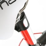 De Vincere is een betaalbaar middenmodel. 1250 euro kost het frame. Een carbon monococque frame. Het frame heeft een aflopende bovenbuis. De onderbuis is oversized en komt uit in een bracket met ‘monobox. De staande buis is bij het bracket plat geovaliseerd, bij de doorgetrokken ‘ISP’ zadelpen gaat de bovenbuis over in een smalle staande achterzijde. De liggende achtervork is S-bended en plat. Het bracket heeft ‘gewoon’ BSA schroefdraad, de derailleurkabels lopen buitenlangs. 1170 gram licht (M), 390 gram voor de full voorvork.