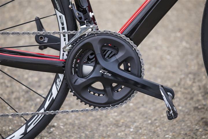 SteekassenDe CDX heeft vóór een 15 mm steekas, achter 10 mm steekas en 160/140 mm ‘discs’. Met ‘flat mount’ aansluiting. Netjes. En nog meer moois: interne derailleurkabels, remleiding door de onderbuis en geïntegreerde bracketlagers. Mooi in de lak ook. Van voor tot achteren: German Engineering. Rose heeft het altijd goed voor elkaar: het frame weegt krap 1100 gram, de voorvork 350 gram en de torsiestijfheid is met 117 Nm keurig. Heel erg netjes is het complete gewicht. Slechts 8,20 kilo. Verder wielen van DT Swiss, delen van Ritchey Selle Italia en Continental. Je hebt als klant de keuze uit 50/34 of 52/36 cranks en je kunt je eigen 11-speed cassette kiezen: de ‘lange slag’ 105 achterderailleur kan tot ‘32’ schakelen.
