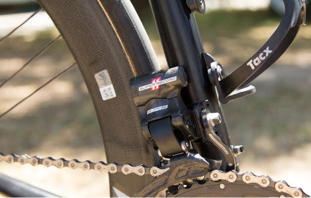 Voorderailleur: Campagnolo Super Record EPS + Campagnolo ketting geleider.