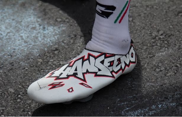 Er zullen weinig profs in het peloton rondrijden die een grotere materiaalfreak zijn dan Hansen. De Australiër was jarenlang een trouw forumlid op Weight Weenies. Ook rijdt hij rond met schoenen die hij zelf heeft ontworpen en gefabriceerd. Zijn Hanseeno schoenen wegen 98 gram per stuk. De prof uit de Lotto ploeg wil ze binnenkort op de markt brengen.