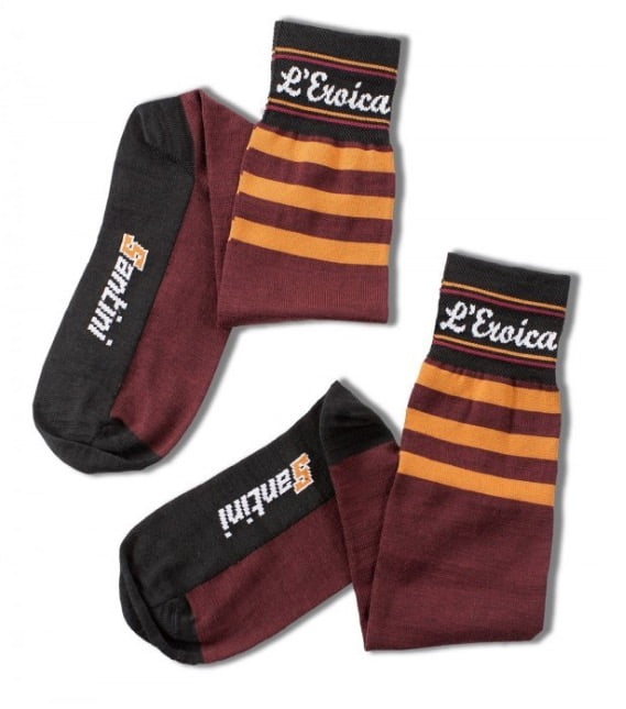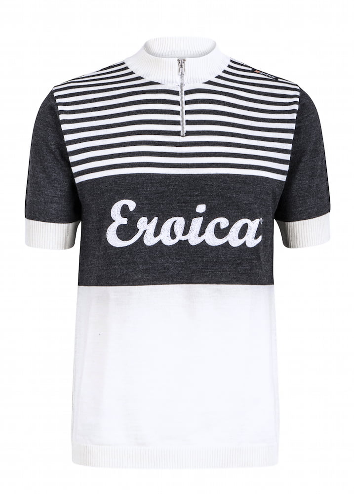 Daar waar Santini hun moderne fietscollectie vooral op prestatiegerichte fietsers richt, is de L’Eroica collectie er eentje om vooral van te genieten. De L’Eroica vintage collectie bestaat uit wollen en lycra met retro print fietsshirts, fietsbroeken, handschoenen, sokken, fietspetjes, t-shirts en diverse L’Eroica accessoires. De L’Eroica collectie is te bestellen bij Santini dealers die via deze website zijn te vinden: http://www.racompany.be/en/pointsofsale.