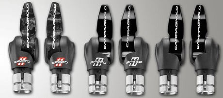 De nieuwe bar-end shifters zijn beschikbaar voor 10- en 11-speed. De aerodynamica wordt geoptimaliseerd dankzij het Back to Zero-principe. Hiermee kun je zelf de gewenste startpositie instellen. Na te hebben geschakeld, zal de hendel altijd terugkeren naar de ingestelde positie. Je kunt tot 3 tanden tegelijk op- of afschakelen.Dit mechanisme zorgt ervoor dat de hendel zich altijd in de beste positie bevindt met het oog op het aerodynamica. Dankzij het ergonomische ontwerp zijn de handen bovendien altijd perfect geplaatst, terwijl het schakelgemak even groot blijft.De bar-end shifters zijn vederlicht: slechts 155 gram in de carbon versie voor 11-speed. Lichter bestaat op dit moment niet. Bij 11-speed kan ook worden gekozen voor de aluminium bar-end shifters van 167 gram. Bij 10-speed is alleen deze aluminium versie beschikbaar. www.campagnolo.com