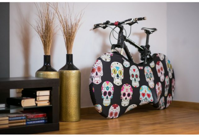Voor 49 euro sturen ze hem toe, wereldwijd, geen verzendkosten. Je hebt de keuze uit 22 verschillende designs. Bestellen kan op velosock.com. Zo’n kek dressoirkastje om je fiets op te zetten krijg je er niet bij.Velosock, om je smerige fiets toch binnen te zetten