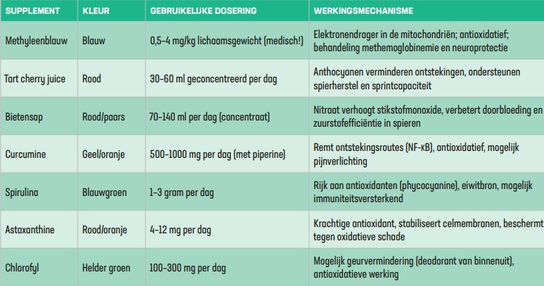 Maar goed, alle kleine effectjes kunnen ervoor zorgen dat je als topper wel als eerste over de finish komt. Er zijn veel meer felgekleurde supplementen die de laatste tijd gepromoot worden. Wellicht omdat ze ook visueel interessant zijn op Instagram en Tiktok?