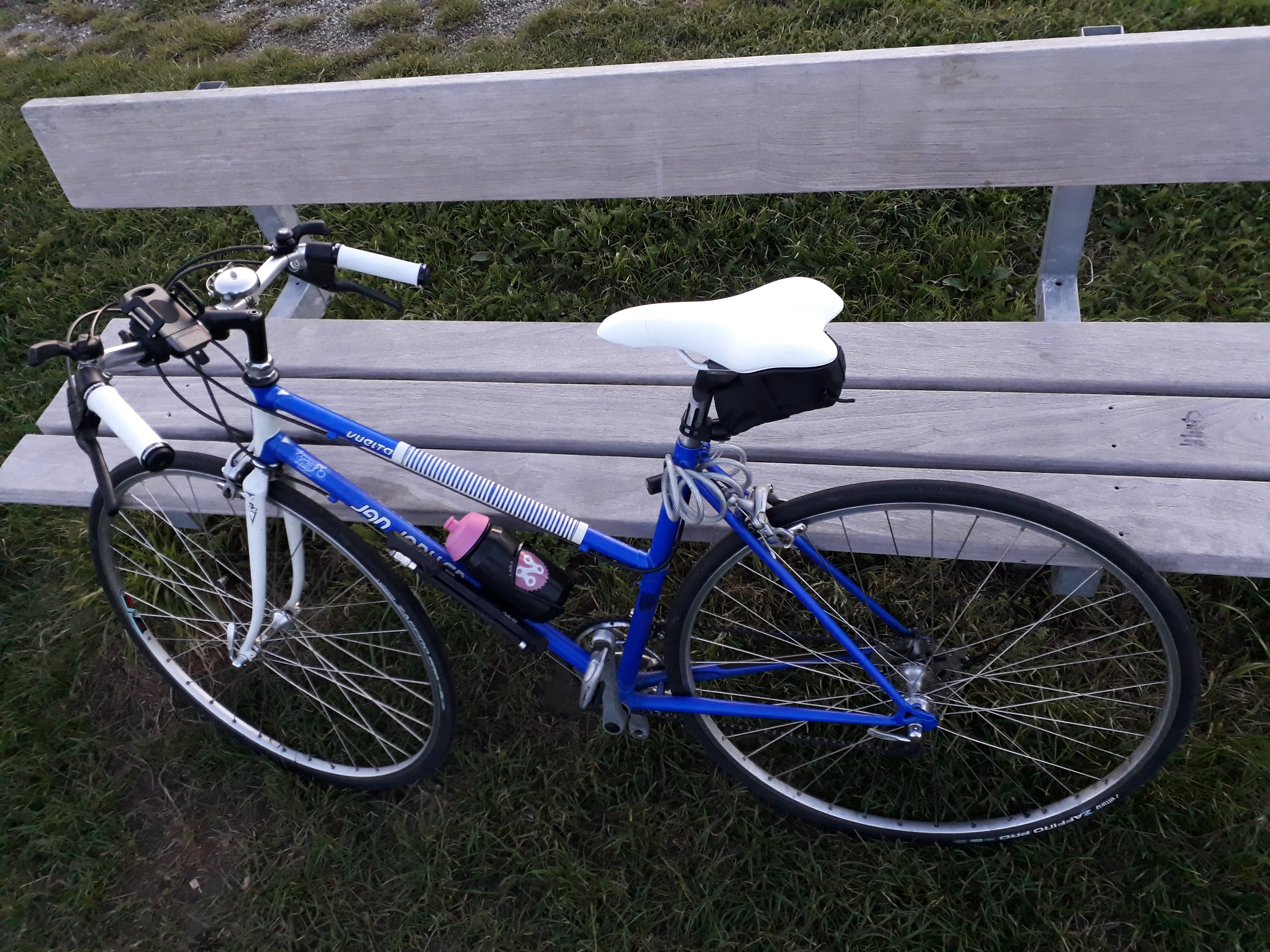 De titel van mijn verhaal is waar het allemaal mee begon. Mijn bijzondere fiets… Wat navraag en speurwerk heeft mij inmiddels al geleerd dat ik de trotse eigenaresse ben van een Jan Janssen Vuelta uit 1992. Een echte klassieker dus. De vorige eigenaresse is een dame van inmiddels ver in de 80. Er is al aardig wat aan mijn fiets verbouwd. Ze is voorzien van klikpedalen, een bergverzet, bredere bandjes (waardoor de spatborden niet meer pasten). Tot slot heeft ze een nieuw zadel en handvaten gekregen. Dit alles is mogelijk gemaakt door goede kennis Eric Mioch van Mioch Cycling.