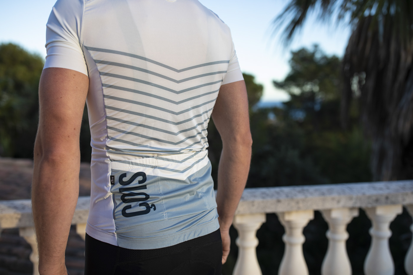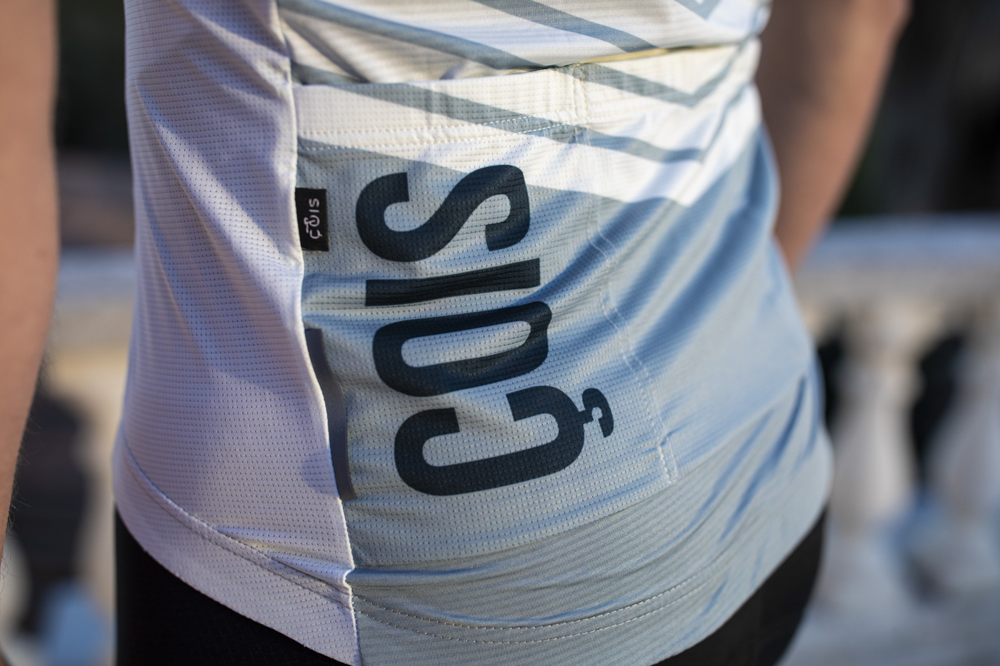 De race kleding voor de heren test ik zelf. Het duurt eventjes voordat het weer op gang komt en de kleding uit het plastic kan. Maar inmiddels zijn er de nodige kilometers mee gemaakt. De kleuren van het Panache shirt zijn wat eigenaardig. Het net-niet wit ziet er klassiek (of oud) uit. Maar daarmee ook chique en stijlvol. De verwijzing naar ‘vroeger’ en betere tijden zijn duidelijk zichtbaar. Technisch gezien is het shirt niet veel anders dan de dames versie. Drie zakken achterop. Inclusief een extra afsluitbaar zakje aan de zijkant. De ietwat fragile rits zit er zeer discreet in verwerkt. Amper zichtbaar. Erg mooi. De pasvorm is aero maar niet te te strak. Je hoeft geen doorgewinterde flandrien te zijn met minstens 500 kilometer in de week om er probleemloos in te passen. Een M, valt neutraal. Gewoon als een M.