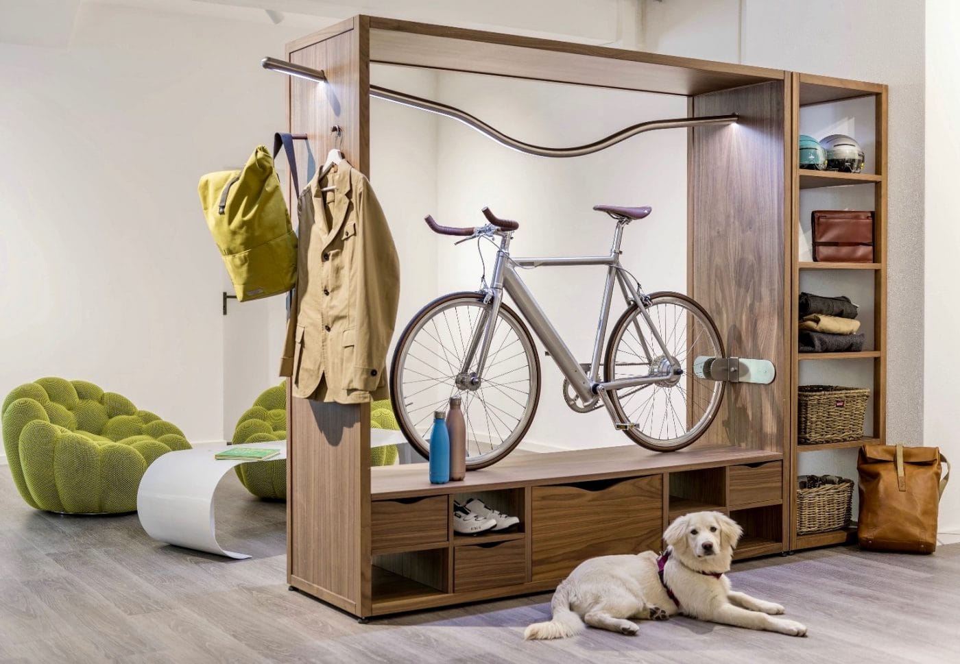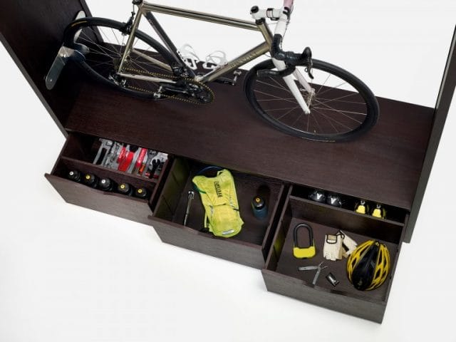 De Domus is misschien wel het ultieme fietsmeubel voor elke fietsliefhebber. Een ode aan de fiets en dat midden in de woonkamer. Antonelle en Ran noemen ‘m ”The ultimate celebration of your cycling passion: an illuminated piece of furniture that turns your bike into a work of art”.
