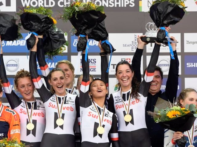 Ook de mannen van Team Sunweb, met onder andere Tom Dumoulin, kroonden zichzelf tot wereldkampioen ploegentijdrit. “Het betekende veel voor mij toen de mannen van Team Sunweb ook wonnen. Beide teams hebben zich op dezelfde manier voorbereid en we brachten veel tijd met elkaar door in aanloop naar de race. Ik denk dat onze overwinning ’s ochtends de mannen inspireerde om in zichzelf te geloven tijdens de tijdrit later die dag. Ik hoop dat onze overwinning andere ploegen zal inspireren, zodat ze de voordelen zien van het ondersteunen van zowel een World Tour-programma voor mannen als vrouwen.” Samen met haar team schreef de 27-jarige Canadese al een wereldtitel op haar naam, maar ze droomt er ook van om zelf wereldkampioen te worden.Ik denk dat onze overwinning ook de mannen inspireerde om in