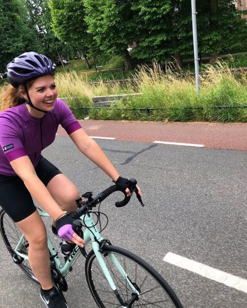 De eerste rit ging natuurlijk niet helemaal soepel (lekke band na 20 min), wat je in de vorige blog kon lezen. Gelukkig verliep m’n tweede rit van 20km vlekkeloos. Na deze oefensessies voelde ik me een stuk zekerder op de racefiets en had ik ook echt zin om over te stappen op het echte werk: klikpedalen mét fietsschoenen! Grappig trouwens hoe snel je went aan dingen. Tijdens mijn allereerste ritje durfde ik het stuur bijna niet los te laten om mijn hand uit te steken. Ik wiebelde voor m’n gevoel heel erg en oh die dunne bandjes, dat was toch allemaal niet stevig? M’n vingers zaten standaard ‘voor het geval dat’ om de remhendel heen. Bij elk steentje dacht ik dat die dunne bandjes het zouden begeven en wat was dat stuur toch extreem wendbaar. Ook m’n bidon pakken tijdens het fietsen vond ik alles behalve fijn, alsof ik 3 meter voorover moest bukken (hoop zo dat dit herkenbaar is voor mensen, zo niet, dan ligt het aan mij 😄) Maar na 2/3 ritten wen je hier dus al aan en zit je veel zelfverzekerder op de racefiets.