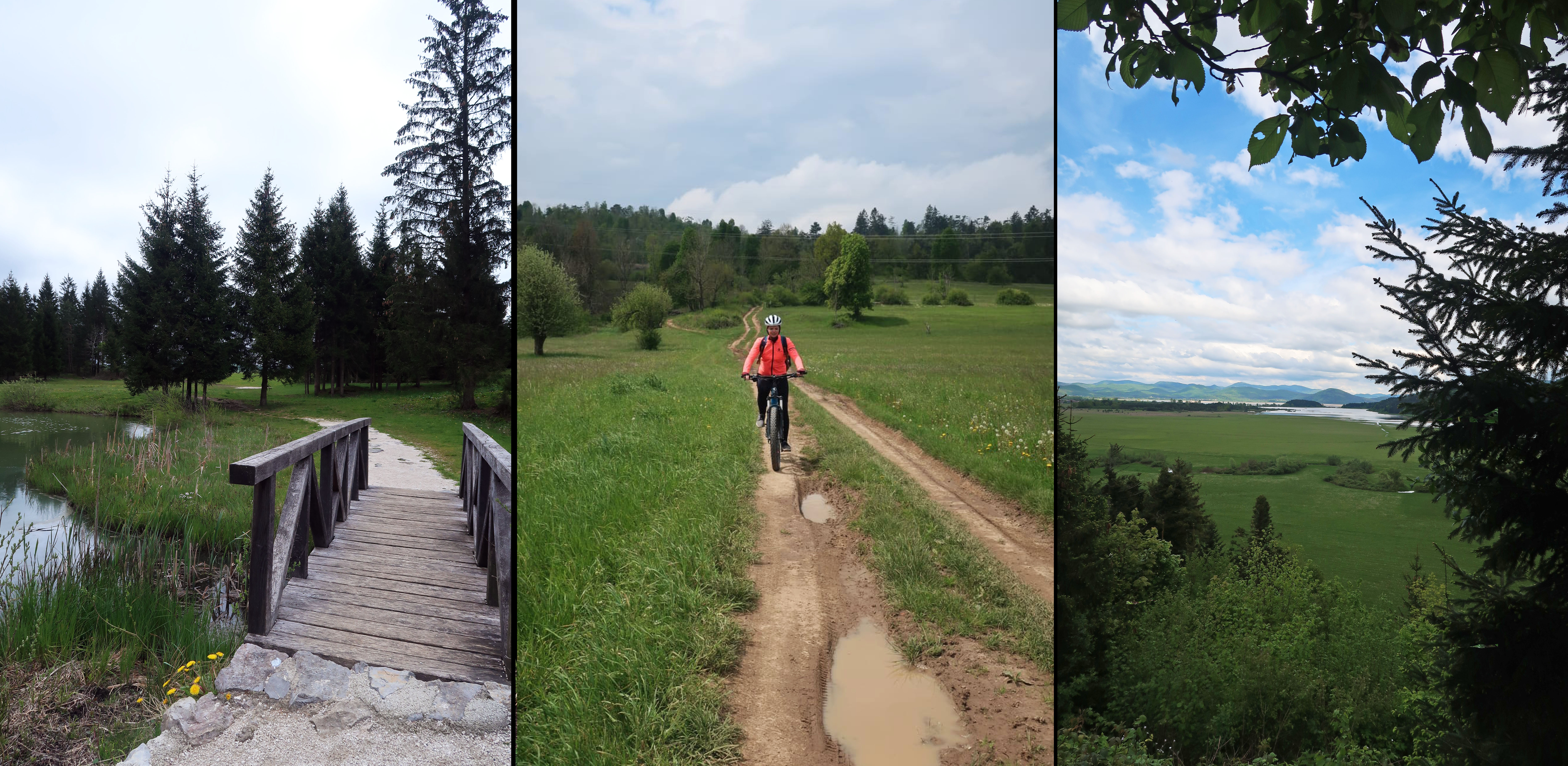 Op dag drie maken we een lange afdaling naar een prachtig meer in Green Karst. De ondergrond hier is alles behalve goed te noemen, van tientallen loszittende stenen tot diepe modder, maar hé dat hoort erbij. Ik maakte me continu zorgen om de banden, maar die hebben het wonder boven wonder allemaal overleefd. Eenmaal onderaan zien we pas wat we precies weer omhoog moeten fietsen. En dat is even slikken. Helemaal als het ook nog begint te regenen, dikke pech want normaal zou het hier in mei een heerlijke 20 graden moeten zijn.