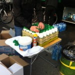 Het zijn er nogal wat, de bidons die gevuld moeten worden voor Parijs-Roubaix. Team Europcar heeft er alvast 150 gevuld. ”We hebben het nodig”, legt één van de mecaniciens uit. ”Op de kasseien verloren we vorig jaar veel bidons. Boviendien wordt het een droge hel. Door al dat stof krijgen de renners een erg droog gevoel in hun mond”.