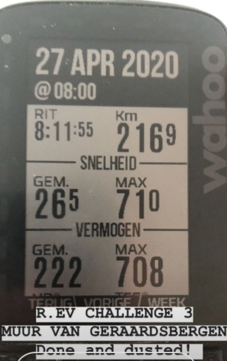 Evenepoel reed na elke passage van de top van De Muur een klein rondje om weer onderaan te beginnen. Het resulteerde in een trainingstocht van meer dan 8 uur, 216 kilometer en meer dan 5.000 hoogtemeters.