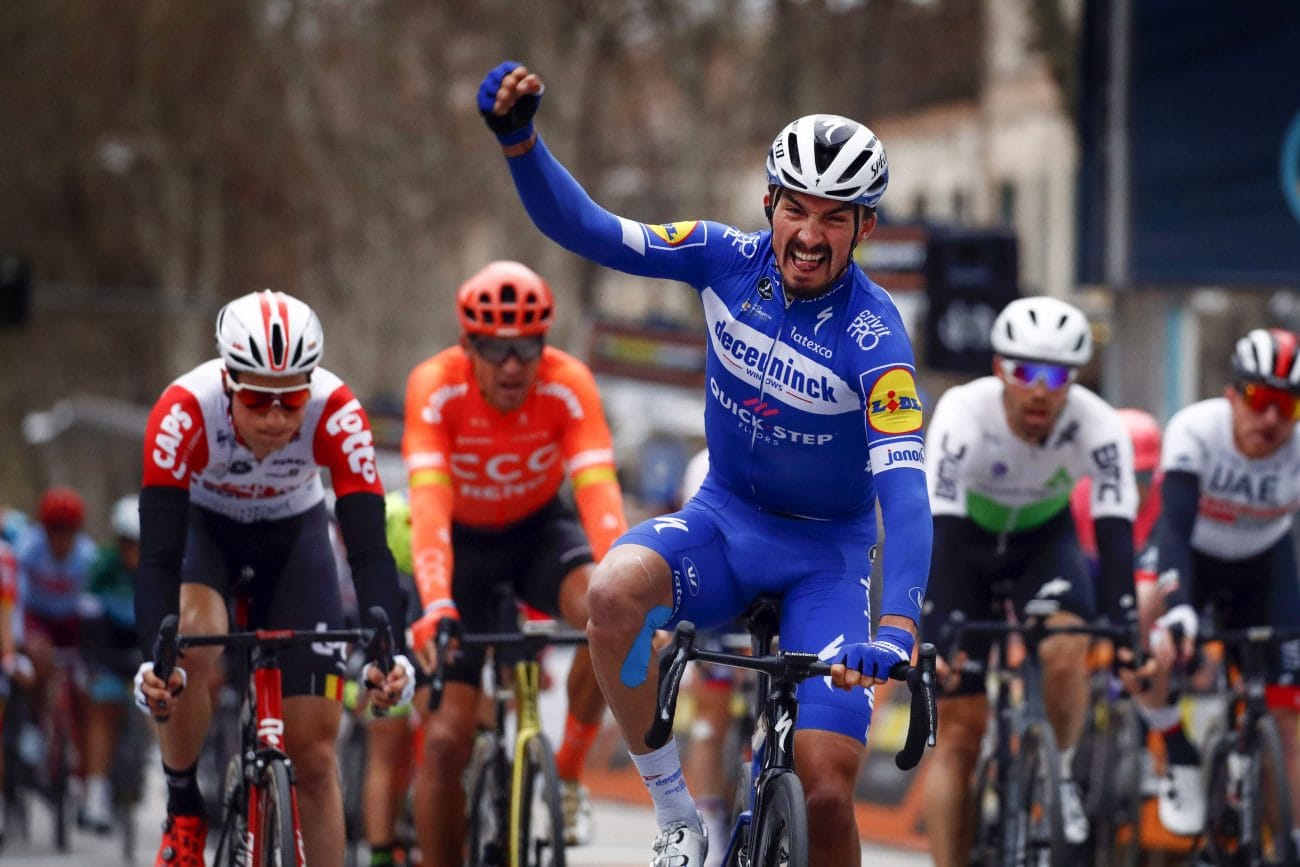 Alle ogen waren in de voorlaatste etappe van de Tirreno-Adriatico gericht op de sprinters, maar het was Julian Alaphilippe die de overwinning veroverde. De Fransman verbaasde vriend en vijand door in een massasprint Davide Cimolai en ploegmaat Elia Viviani voor te blijven.