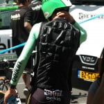 Vorig jaar vertle Gerard Rietjens ons al dat het idee afkomstig is van Robert Gesink en Steven Kruijswijk. Tijdens een trainingskamp in de Sierra Nevada en in de Verenigde Staten zagen ze blowers staan op de terrasjes waar ze af en toe stopten voor een kop koffie. Rietjens zette het idee om in realiteit. “Koelvesten zijn niet genoeg. Huid geeft nog veel meer warmte af als het nat is, dus dit is de ideale remedie.”