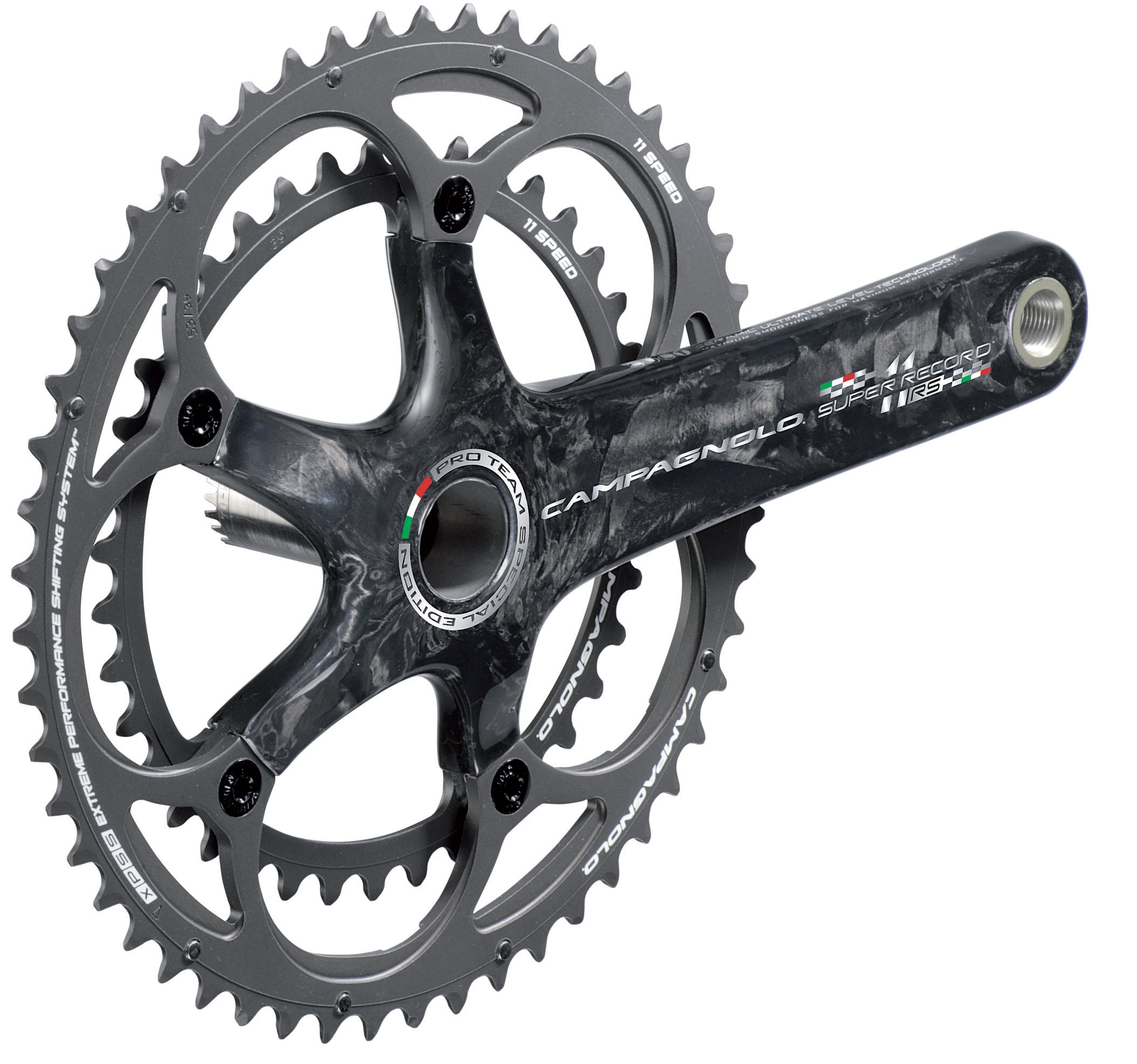 Hoewel de RS op het oog niet zo veel verschilt met zijn voorganger de Super Record, is de techniek wel degelijk anders, beweert Campagnolo. De belangrijkste verandering zou zitten  in de voorbladen en de voorderailleur. Campagnolo zegt de vorm van de tandjes op de bladen te hebben aangepast om zowel de omwentelingen en het schakelen efficienter te laten verlopen. ”De structuur en de hoeken van de voorderailleur zijn aangepast voor een optimale comptabiliteit met de kettingbladen”, stelt de onderdelenfabrikant. De exacte technische werking van de nieuwe groep heeft Campagnolo niet bekend gemaakt. De groep is beschikbaar in de voorbladcombinaties 53/39, 52/36 en 50/34.