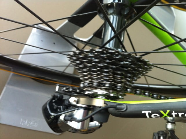 De Duitser rijdt met extra schakelknopjes die in de beugel zijn gemonteerd. Dit geeft Kittel de mogelijkheid om in de sprint nog van versnelling te wisselen. De batterij van de elektronische schakelgroep is tegenwoordig in het frame weggewerkt. De batterij zit in de zitbuis.