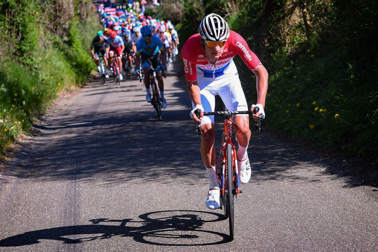 Van der Poel in de aanval op de Gulperberg. Een opvallender statistiek is het segment ‘Final Loop AGR 2018’, ofwel de finalelus van de Amstel Gold Race. Bij het aanvangen van de slotronde reden Julian Alaphilippe en Jakob Fuglsang aan de leiding. Michal Kwiatkowski reed daarachter met Matteo Trentin en daar weer achter werd er slag om slinger gedemarreerd. Wat opvalt is dat Michal Kwiatkowski, die met twintig seconden achterstand op Alaphilippe en Fuglsang aan de slotronde begon, uiteindelijk 22:36 minuten deed over het rondje. Van der Poel zette de KOM neer met 21:50 en was dus 46 tellen sneller. Hij reed rond met een gemiddelde hartslag van 171, flink in het rood. Hij was anderhalve kilometer per uur sneller dan de Pool. Dan te bedenken dat Van der Poel grotendeels zelf de achtervolging leidde.