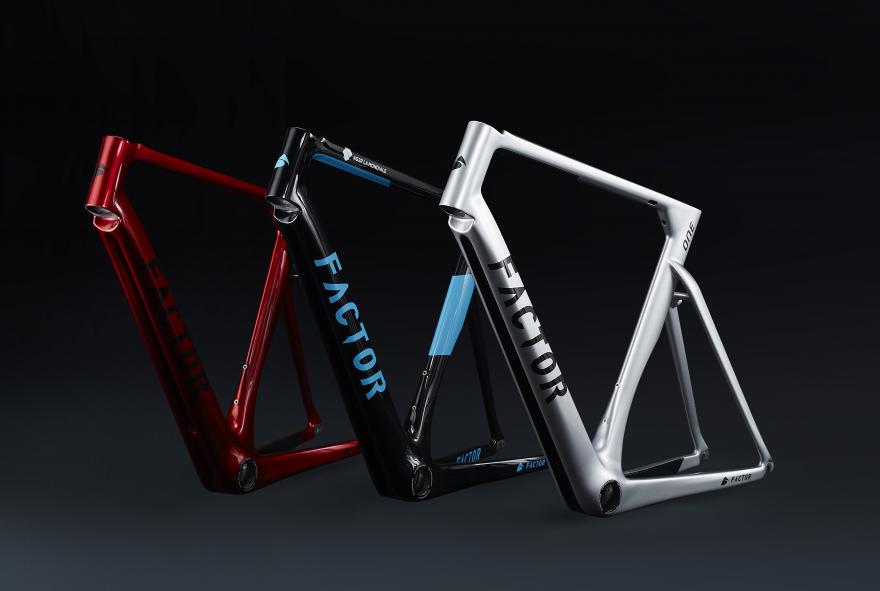 De Factor One heeft een eigen zadelpen, die beschikbaar is in 0 of 25mm setback. Het frame is er voor zowel velg- als schijfremmen en alleen geschikt voor elektronische schakelgroepen. Er zijn zeven maten, van 46 tot 61 cm. Ook komen er drie kleuropties, waaronder ook zwarte met lichtblauwe AG2R La Mondiale kleuraccenten. Dat is het Pro-team dat op deze fiets rondrijdt. Je zult de Factor One dan ook gaan zien in de voorjaarsklassiekers, waar de profs blij gaan zijn met de ruimte voor 28mm banden.