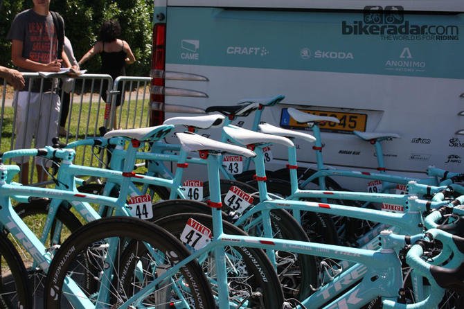 Schleck heeft op zijn reservefiets wel het inForm Team Issue zadel geplaatst.