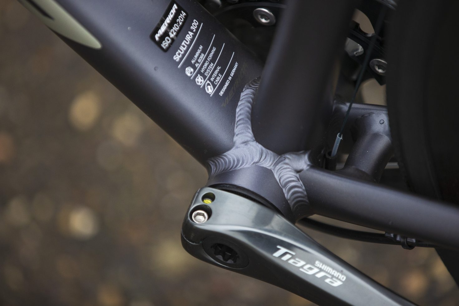 Er zijn drie types van de Scultura Disc: 100, 200 en 300. Het materiaal is 6066 hydroformed ‘Scultura Lite’ aluminium, lekker stevige onderbuis, ronde staande buis en doorlopende bovenbuis in de achtervork. De derailleurkabels lopen binnendoor de onderbuis en komen bij het bracket weer naar buiten. De rechte voorvork is een volledig carbon model met twee maten lagers.