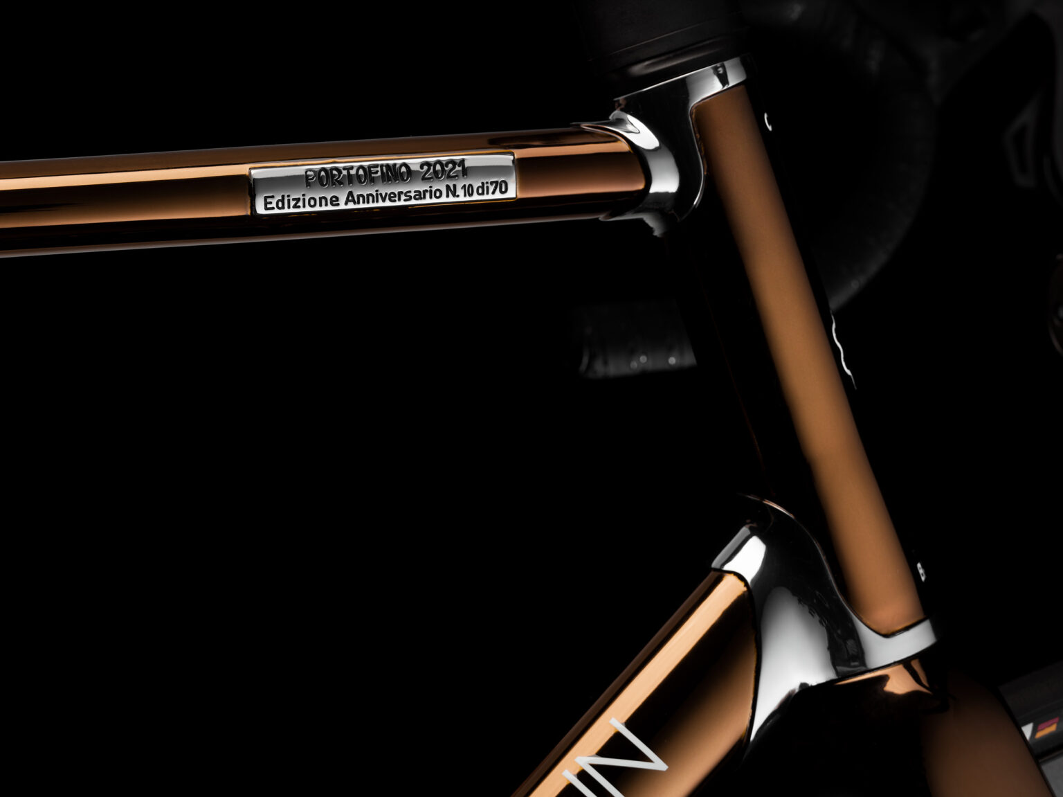 Er zullen slechts 70 Portofino EVO Edizione Anniversario-frames (of fietsen) gebouwd worden, allemaal individueel genummerd. Alle frames van Officina Battaglin voor 2021 zullen het 40-jarig jubileum herdenken van zowel het merk Battaglin als de Giro-Vuelta-dubbel van Giovanni Battaglin. Elke Portofino wordt geleverd met een vergulde badge op de zitbuis, met een speciaal in opdracht gemaakt embleem en een echte (!) diamant erin.