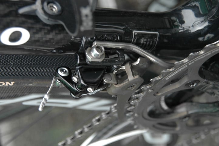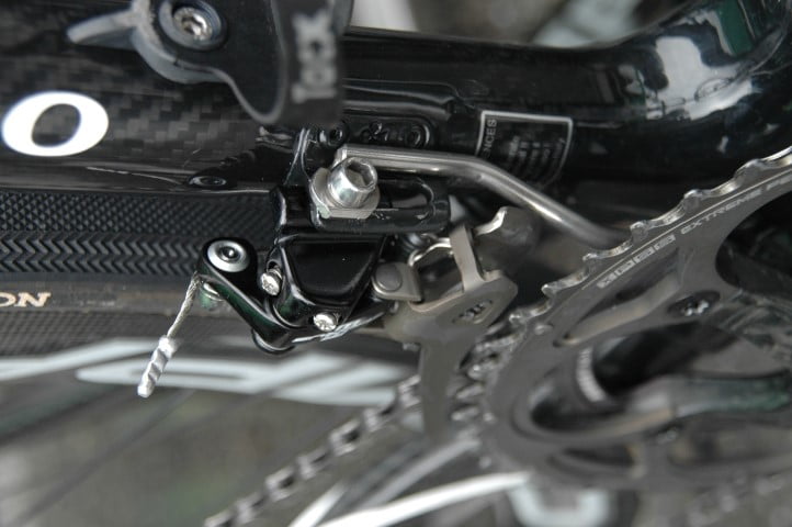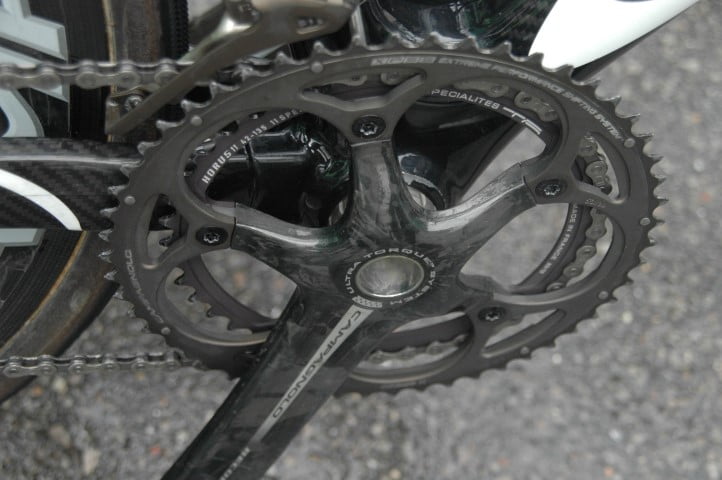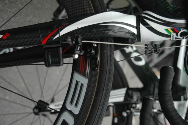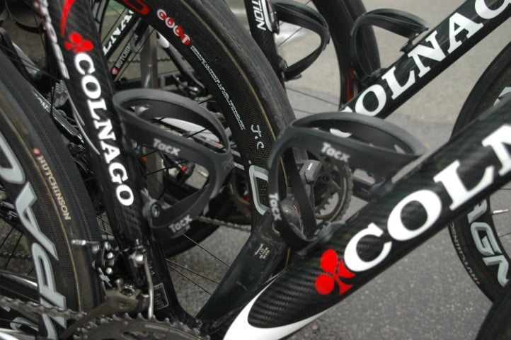 De keuze voor 28mm brede tubes is ook opvallend. De meeste teams rijden op 27mm brede tubes. Volgens Norbert Gangloff van bandenleverancier Hutchinson heeft dat te maken met de stijfheid van de Campagnolo wielen. ”Twee jaar terug reden we Parijs-Roubaix ook met 27mm bandjes. De renners willen meer comfort. Dus hebben we speciaal 28mm brede tubes laten maken”.