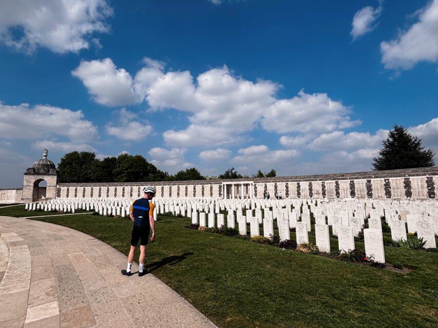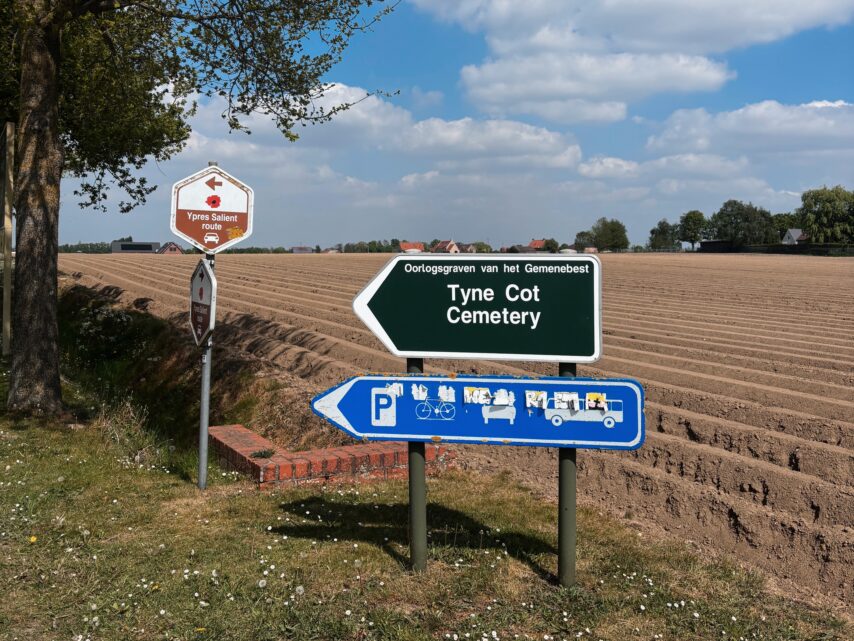 Als we Roeselare achter ons laten, rijden we door het licht glooiende landschap richting Zonnebeke. Via een heerlijk slingerende weg dalen we met vaart af naar Tyne Cot Cemetery, vlakbij het plaatsje Passendale. Het is een indrukwekkende begraafplaats waar zo’n 11.000 soldaten van het Gemenebest begraven liggen, gesneuveld tijdens de Slag bij Passendale in de Eerste Wereldoorlog. Als je de namen leest, vaak met jonge leeftijden erbij, stemt dat triest. Je realiseert je des te meer dat we ook vandaag nog weinig geleerd hebben van deze verdrietige geschiedenis, waarvan de littekens hier duidelijk zichtbaar zijn tussen de Vlaamse akkers.