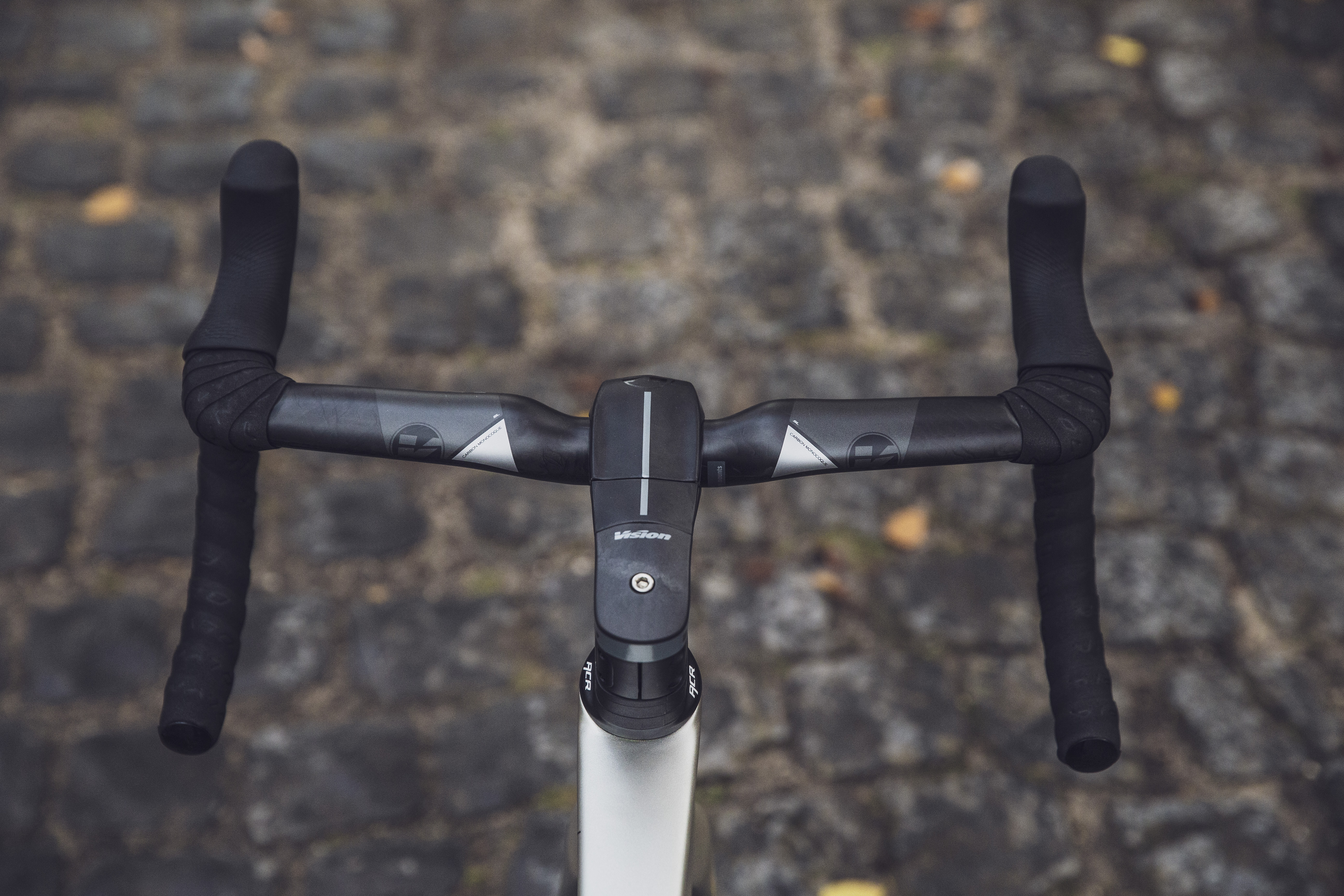 Je kunt de Leader Disc als los frame kopen en compleet met Ultegra vanaf 3999 euro. Deze met eTap AXS is ruim 1000 euro duurder. Het is een pure allrounder met endurance genen. Het frame is licht – rond 900 gram – en ietwat aerodynamisch. Een mix van composiet (T1000, T800 en M40J), lage aanzet van de achtervork, 12 millimeter steekassen en flat mount-remklauwen, interne kabels, oversized balhoofdbuis met Vision Metron-cockpit. Maar dan wel met een compact stuurbocht. Er passen met gemak banden tot 28 en 30 millimeter in.
