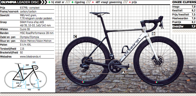 Het toont ook aan dat het niet eenduidig is om over dé endurance fiets te spreken. Of over een 100 procent wedstrijdfiets. En De Leader is ook geen criteriumfiets, eerder een gran fondo-racer. En in dit soort tochten moet vaak lang en flink worden geklommen. Olympia realiseert zich ook dat veel deelnemers zich coureur voelen, terwijl ze waarschijnlijk niet de flexibiliteit van Nibali en Trentin hebben… Daarnaast speelt de zuidelijke trots een rol.