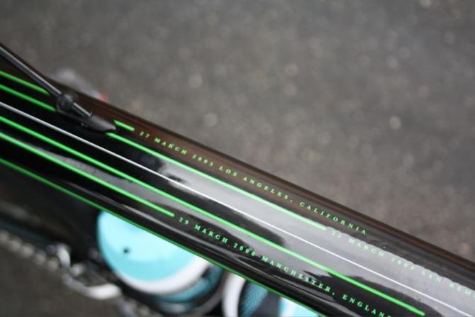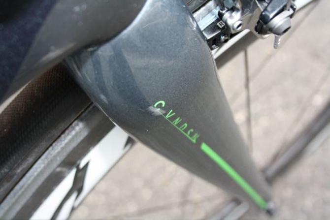 Cavendish won donderdag in Treviso de dertiende etappe. Het was alweer zijn honderdste profzege. De Brit heeft de nieuwe fiets mede ontworpen. Het frame is zwart metallic en heeft dunne groene strepen. De Venge is afgemonteerd met SRAM onderdelen en een stuurpen en stuur van Zipp. Ook de wielen zijn van Zipp: de Zipp 808.