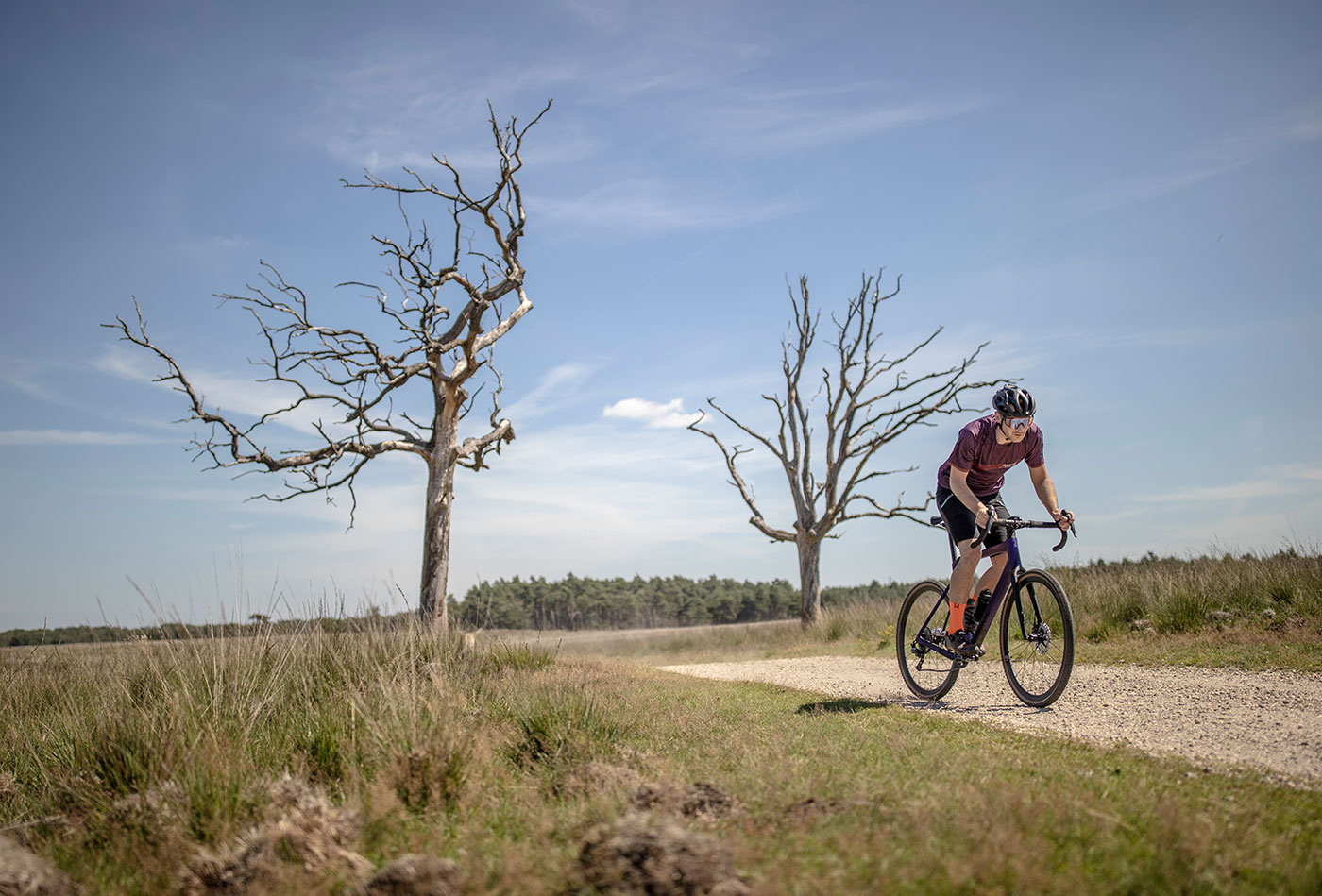 Deze nieuwe Backroad is volledig ‘gravel dedicated’ als we Rose moeten geloven. Mijn testritten bestonden dan ook uit rondjes Veluwe, Brabants klapzand en een lokale singletrack. Tot ik aanhaakte bij de Pathfinder giro. Een ongeorganiseerde toertocht rondom Eindhoven. 25+ graden, geen strook hard zand te vinden en ploegen all-the-way. Inclusief kilometers singletracks.Niet het terrein waar je met een gravelbike wilt zijn, maar oh: wat knalde die Backroad er probleemloos doorheen. Was het mijn jaarlijkse goede dag? Of heeft Rose iets bijzonders gemaakt en is deze gravelbike wel cross-proof? Genoeg nieuwsgierigheid om hem een winter lang te ontvoeren.