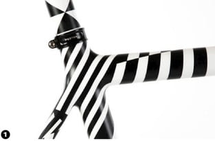 Een koerier belt aan. Dat moet mijn Festka zijn. Ik zet een handtekening, sleep de dozen naar binnen en begin gelijk met uitpakken. Alsof het Sinterklaasavond is. Wow. Wat een flashy fiets komt er tevoorschijn. Het zwartwit gelakte frame heeft iets van het patroon van een prototype-auto die zijn vorm niet wil prijsgeven. Ik vind het prachtig. Het dazzle-patroon is ook doorgezet in de stuurpen en de zadelpen. Het lakwerk is strak en clean. Dat moet ook, het is de enige manier om zo’n patroon te laten werken. Het is gebaseerd op de camouflage van oorlogsschepen in de eerste helft van de twintigste eeuw, en een symbolische hommage aan Sir John Graham Kerr, de bedenker van militaire camouflage.