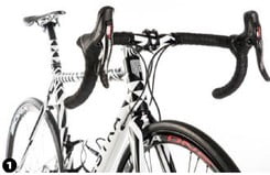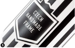 Het frame is opgebouwd uit losse buizen. De carbon specialisten bij Festka zijn telkens op zoek naar de beste manieren om een licht en stijf frame te bouwen. Daarbij lenen ze technieken van de Formule 1 en vragen ze regelmatig feedback van professionele renners. In samenwerking met het Tsjechische CompoTech Plus, een vooraanstaande carbon composiet fabrikant, en de Universiteit van Praag ontwikkelden zij een unieke buis die uit drie lagen bestaat. De lagen worden niet met matjes gelegd, zoals meestal gebeurt, maar gewikkeld door een vezeldraadwikkelmachine. De precisie is daarbij erg hoog. De eerste laag is de 90-gradenlaag. Deze is bedoeld om vervorming van de buis te voorkomen. De 45-gradenlaag zorgt voor torsiestijfheid en de 0-gradenlaag voor de stijfheid. Veel merken hebben een ‘bijna’ 0-gradenlaag, die tot zo’n 15 procent minder stijf zou zijn dan een echte 0-gradenlaag. De buizen zijn tube to tube gemonteerd. Dit betekent dat er geen lugs gebruikt zijn, en dat geeft veel mogelijkheden op variatie. Dat Festka met deze methode zo’n strak frame heeft kunnen fabriceren, vind ik echt bijzonder. Op de universiteit is het frame wetenschappelijk getest op stijfheid. Door middel van sensoren op en in het frame werd gemeten waar de zwakkere plekken zaten, zodat daar extra aandacht aan kon worden besteed. De vorm van de buizen levert ook een bijdrage aan de stijfheid. De schuine buis wordt zichtbaar groter naarmate je dichter bij het bracket komt, en ook de bovenbuis loop taps toe. De vorm van de liggende achtervork is zo gefabriceerd dat het de meeste stabiliteit geeft.