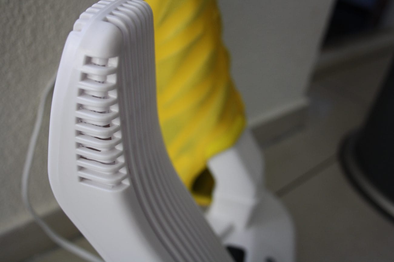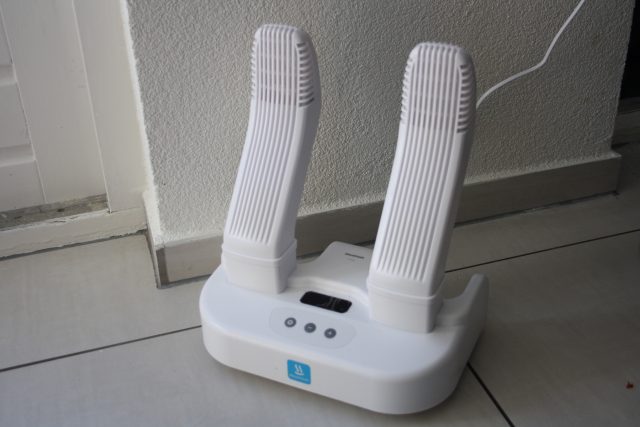 Ik kon voor de makkelijke uitweg kiezen door mijn schoenen onder de kraan te houden en daarna de Shoefresh te gebruiken, maar zo werkt het natuurlijk niet. In de stromende regen ging ik op pad om een stukje hard te lopen (wielrennen in de regen is niet mijn grootste hobby) en kwam ik met doorweekte schoenen weer thuis. De geur van mijn schoenen is sowieso al niet te harden, dus heb ik de hoop op dat gebied wel opgegegeven, maar drogen moet – als ik de verhalen van Shoefresh mag geloven – geen probleem zijn. Terwijl ik nog wat core-stability oefeningen afwerkte, was de Shoefresh op volle toeren aan het draaien om mijn schoenen weer droog te maken. Het geluid van de Shoefresh is een beetje te vergelijken met een föhn, maar heel irritant is het niet. Stop hem ver genoeg achterin je schuur en je hebt er geen last van.