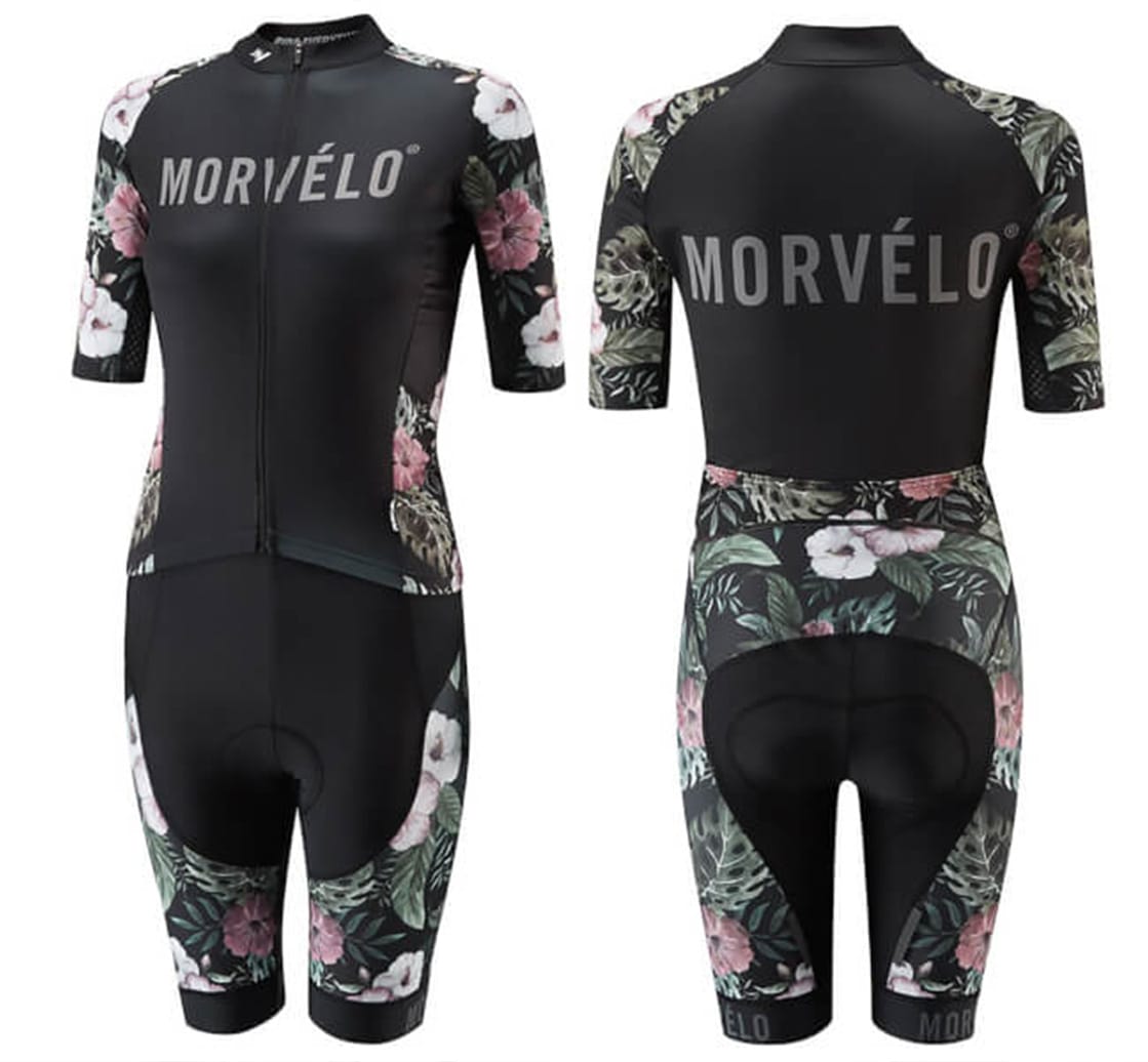 Nog eentje van Morvélo en nog eentje met bloemen, maar dan wel de ‘rustigere’ uitvoering. Dit is trouwens ook een skinsuit, dus de jersey en bibshort zitten aan elkaar vast als één pak.