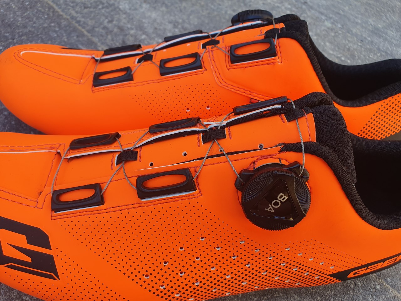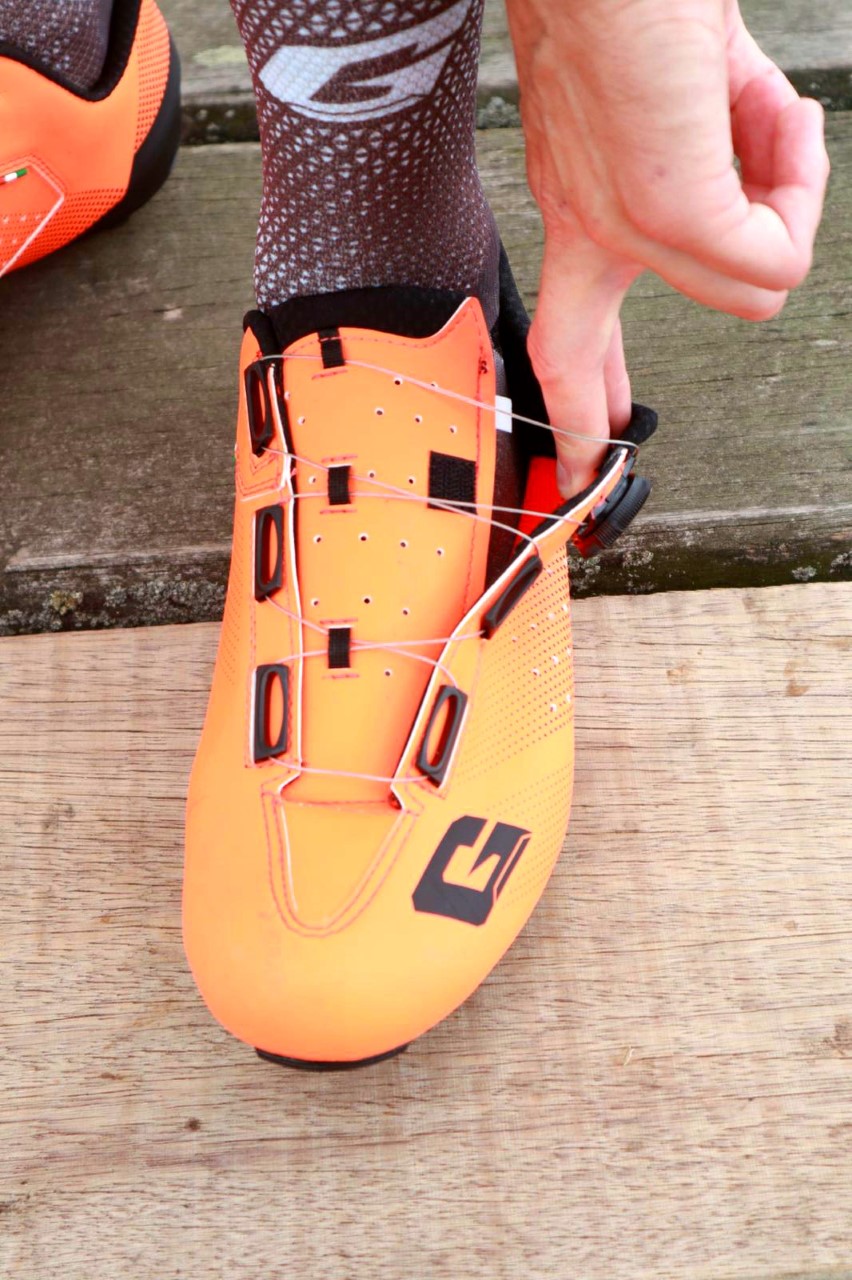 Mijn eerste kennismaking met de G.Tornado was positief. Allereerst de maatvoering. Ik ontving de schoen in maat 45,5 en dat is een half maatje groter dan normaal. Gaerne waarschuwde mij al voor de Italiaanse pasvorm en dat klopt ook. De schoen zit niet vervelend strak en ik heb na een paar maanden nog geen vervelende drukpunten ontdekt. Met een simpele draai aan de Boa L6-sluiting ‘ontspannen’ de roestvrije kabels zich. Aandraaien gaat uiteraard ook makkelijk. Immers: met Boa heb ik nog nooit problemen gehad.