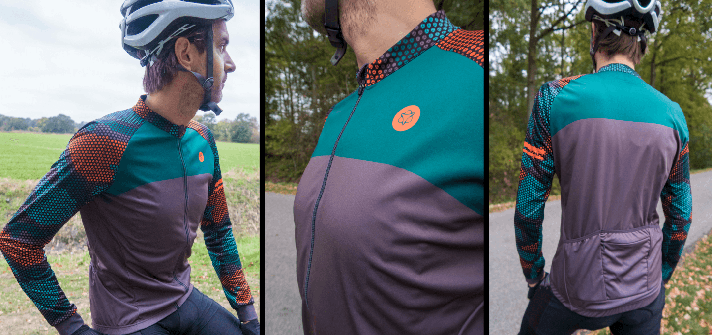 Wat betreft comfort, het winterjack zit heerlijk! De binnenvoering is ontzettend zacht, waardoor deze heel comfortabel aanvoelt. Op het eerste gezicht lijkt het jack niet heel dik, maar dat blijkt niet erg te zijn, het jack houdt het bovenlichaam goed warm. En de ademende, winddichte en waterafstotende buitenlaag beschermt je goed tijdens slechter weer. Beide varianten hebben 3 achterzakken, waarvan één met rits en daarnaast is er ook nog een audio uitgang. Enige minpuntje is dat bij de vrouwenvariant de voorkant eigenlijk nét iets te kort is, waardoor de jersey eronder af en toe zichtbaar is.