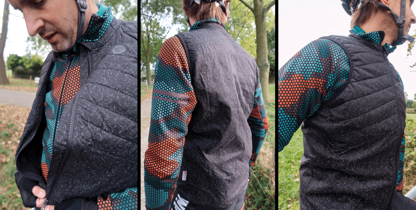 Door deze 360-graden reflectie-print zorgt de HiVis body voor een optimale zichtbaarheid. De padded body is erg comfortabel en sluit mooi om het lichaam aan. Hij is ook winddicht en waterafstotend, maar tijdens een bui is dat niet voldoende om je warm en droog te houden. Daar is het regenjack (ook met 360 graden HiVis reflectie) uiteraard weer wel perfect voor.