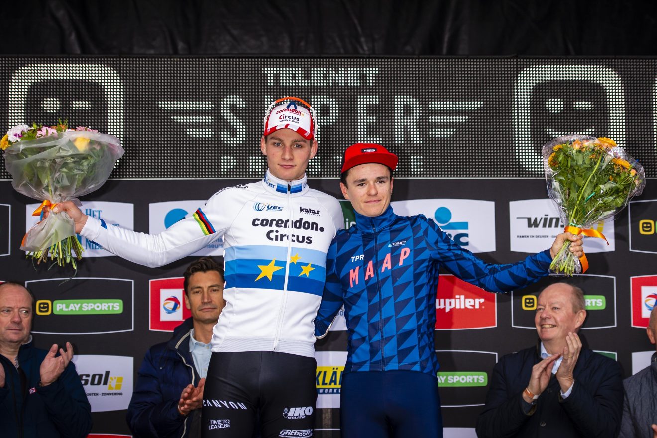 Tom Pidcock met Mathieu van der Poel. Ik ontving een heerlijk wintersetje, althans: dat dacht ik. Officieel is de M-Flag collectie ontwikkeld om je onder de koudste weersomstandigheden warm te houden, maar ook onder milde omstandigheden staat de kleding zijn mannetje. “De M-Flag All Weather Jacket is ontwikkeld met volledig winddichte, rekbare materialen en een waterafstotende DWR-coating”, valt er over het product te lezen. Winddicht en waterafstotend dus, ideaal als de oktober-maand aanbreekt en veel mooiweer-fietsers de fiets voor een paar maanden in de schuur parkeren. Met de All Weather-kleding blijf je niet alleen warm en droog, maar zie je er ook nog is goed uit. Het jasje is in drie kleuren verkrijgbaar, namelijk in het blauw, groen en zwart. Ik ontving de blauwe versie.
