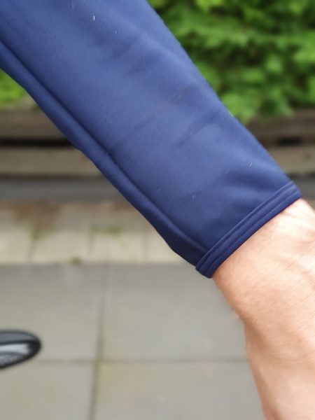 De broek is gemaakt in Italië (het jasje in Bahrein) en is in tegenstelling tot de allround jas wel puur geschikt voor de écht koude winterritten. De zo goed als naadloze broek heeft een Italiaanse ‘touch’ en ziet er mooi afgewerkt uit. Eigenlijk is de Base Thermal Layer een langer ontwerp van de Team Bib Short 2.0, dat dezelfde zeem heeft. Met deze broek is het ook mogelijk om ‘s avonds je ritjes te maken, want aan reflectie geen gebrek.