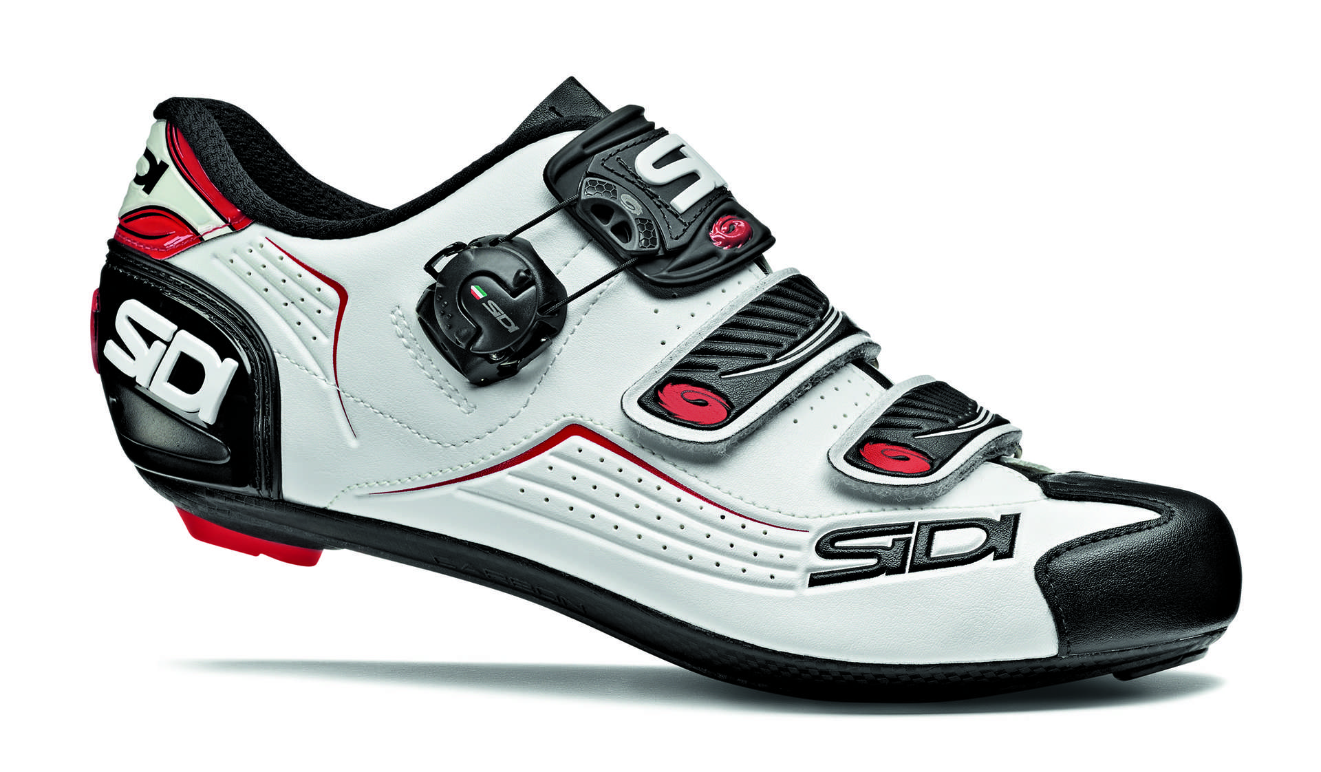 Zoals je in het artikel over de Shot kon lezen: ik ben fan van Sidi. Mijn eerste fietsschoentjes waren Sidi’s en daarom ben ik een beetje bevooroordeeld. Het is toch een soort nostalgie, of iets in die trant. De Sidi Shot vind ik ook een heerlijke schoen, waarbij de stijfheid uitstekend is en de looks in combinatie met het lichte gewicht de schoen helemaal perfect maakt. Minpuntje: voor de Shot leg je meer dan driehonderd euro neer. De Alba haal je voor iets meer dan honderd euro. De vraag is dan natuurlijk: wat is naast de prijs het grootste verschil tussen de Shot en Alba? Allereerst is de Shot gericht op wedstrijdrijders en maken de beste renners ter wereld gebruik van deze pareltjes. Denk maar aan Chris Froome of Vincenzo Nibali; zij fietsen (of fietsten) met de Shot. Dan moet het natuurlijk wel goed zijn. Op de Alba heeft nog niemand de Tour de France gewonnen, maar dat doet niets af van de kwaliteit. De Alba is namelijk gemaakt voor het overgrote deel van de fietswereld, namelijk: de wielrenner die minimaal één keer per week de fiets uit de slaapkamer haalt (want in de schuur staat hij ook maar zo alleen) voor een mooi tochtje. Dat zie je terug in de prijs. De Sidi Shot kost €389,95, de Sidi Alba heeft een adviesprijs van €169,95. De adviesprijs dus, maar de Alba is online voor veel minder te vinden. De Alba is de opvolger van de Level, het vroegere instapmodel van Sidi. Inmiddels heeft het Italiaanse bedrijf zelfs al de opvolger van de Alba gepresenteerd, maar de Alba 2 hebben wij nog niet getest. Eerst de ‘normale’ Alba.