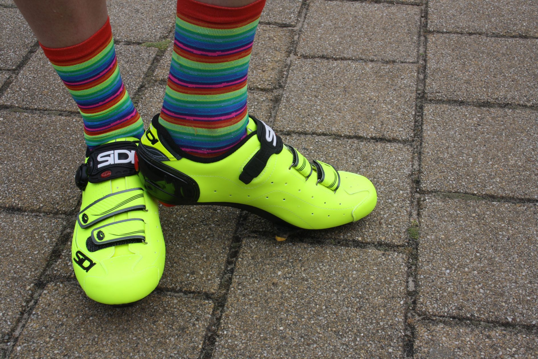 Een nadeel van fluorgeel is dat ze wel snel vies worden.. In combinatie met het comfort, de looks en de stijfheid van de schoen vind ik de Alba echt een goede ‘instapper’, al valt de Alba bijna niet als instapper te categoriseren. Een prijs van €169,95 vind ik namelijk wel aan de hoge kant voor een instapschoen, maar daar krijg je wel flink wat voor terug. Het verstelsysteem met Tecno 3-sluiting en klittenband kan wat mij betreft handiger, maar mocht je je daar écht aan irriteren dan is het een optie om te kijken naar de Genius, Wire of Ergo van Sidi. Daar betaal je dan wel ietsje meer voor. Conclusie: wil je het wielrennen serieuzer gaan aanpakken en zoek je naar een comfortabele doch stijve schoen? Dan is de Sidi Alba een mooie optie! Qua maat valt hij ‘gewoon’ uit, al moet je bij Italianen altijd wel even van tevoren passen.
