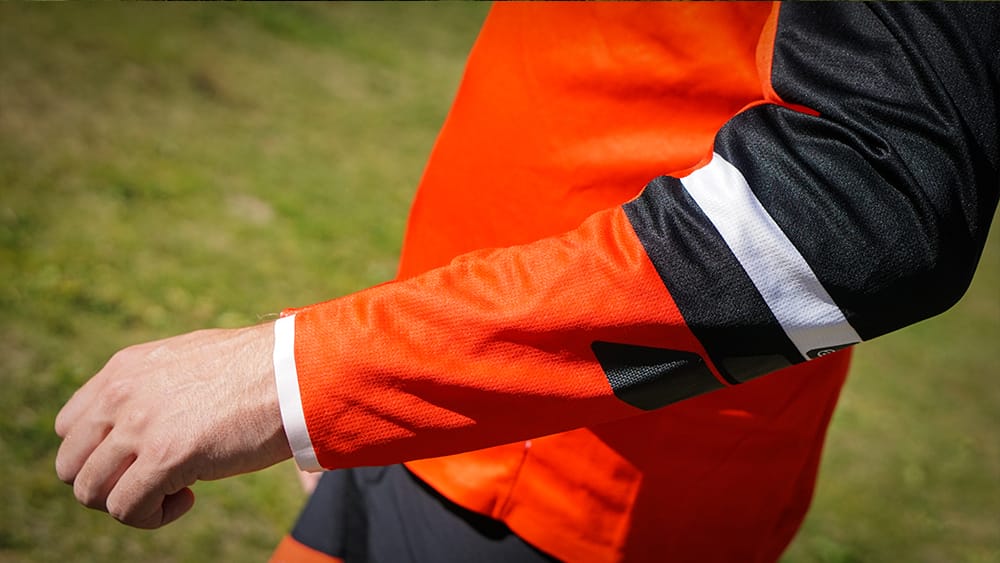 Lange mouwen. Het shirt heeft op een aantal plaatsen aan de binnenzijde een extra zachte stof om schaafplekken bij valpartijen te voorkomen. Een fijn pluspunt want de soms dikke polyester stof kan lelijke brandwonden veroorzaken als je eens hard onderuit schuift.