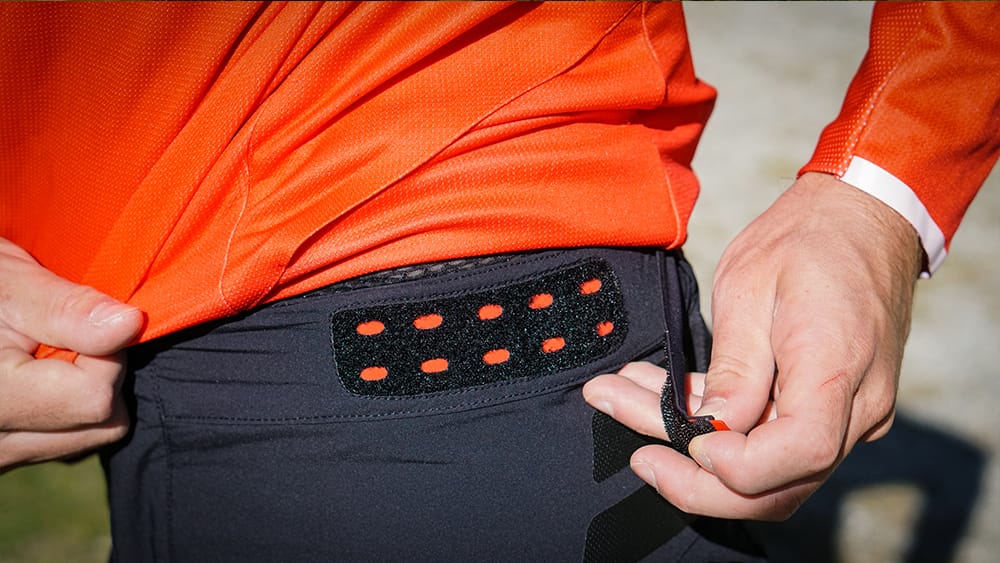 De broek sluit niet alleen qua kleuren perfect bij het Drop Pro shirt, ook dezelfde technieken zien we terug. Een hoge dubbele sluiting met rits en twee drukkers, twee klittenbandstrips aan de zijkant op heuphoogte om afzakken te voorkomen, verstevigde pads op de zijkanten en twee goed geplaatste zakken op de zijkant. Je kunt zo eenvoudig je telefoon of een reep meenemen. Aan de rechterkant zit ook nog een klein zakje voor wat los geld of iets dergelijks. De afwerking is zeer hoogwaardig met mooie materialen, nette stiksels en veel details. De Pro buitenbroek kan jaren mee. De binnenbroek (zonder bretels) heeft een redelijk eenvoudige zeem en is prima voor ritten van ongeveer twee uur in het zadel.
