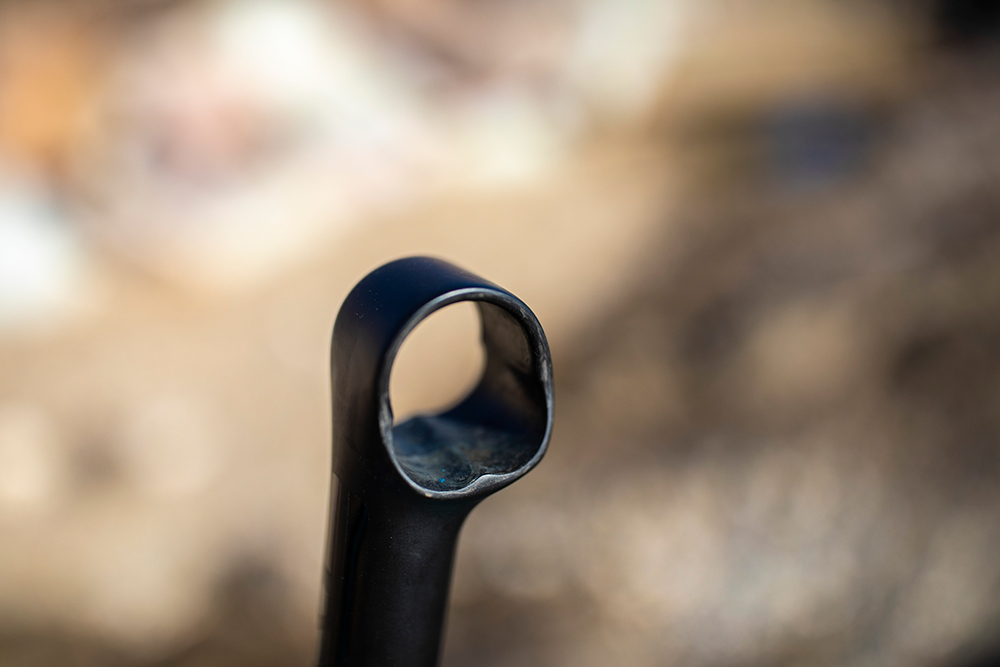 De stuurbocht is vrij kort en heeft een scherpe knik. Wanneer je het stuur onderin vast pakt wijzen je ellebogen automatisch flink naar buiten. Echt aero ga je niet zijn. Door de krappe bocht pak je op het vlakke het stuur ook niet heel lekker onderin beet. Met dit gravelstuur zijn de taken snel verdeeld. Toeren met de handen op het stuur. Hard rijden met de ellebogen in 90 graden geknikt met de handjes op de hendels om vervolgens te dalen in de drops.