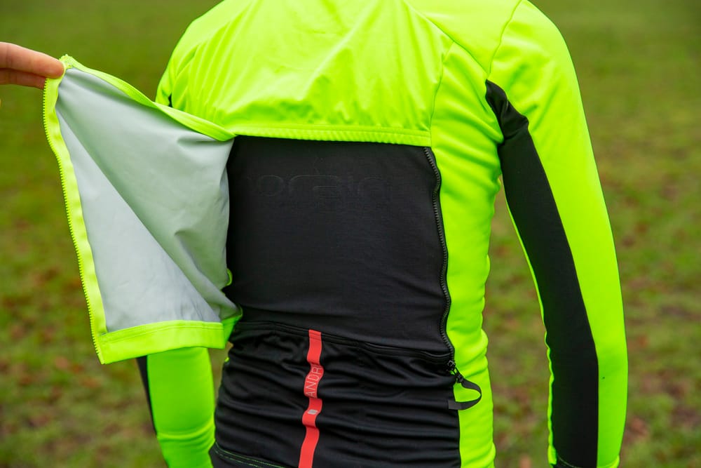 Mooi, dat Fiandre Thermo cabrio jack. Warm & waterdicht. Inderdaad. Waterdicht. Zodra het regent rollen de regendruppels in sneltreinvaart van onze mouwen. De stof neemt het vocht simpelweg niet op. Erg prettig!. De pasvorm is racey en voelt fijn. Het jack is zo warm dat je met enkel een goede onderlaag al prima de koude in kunt.