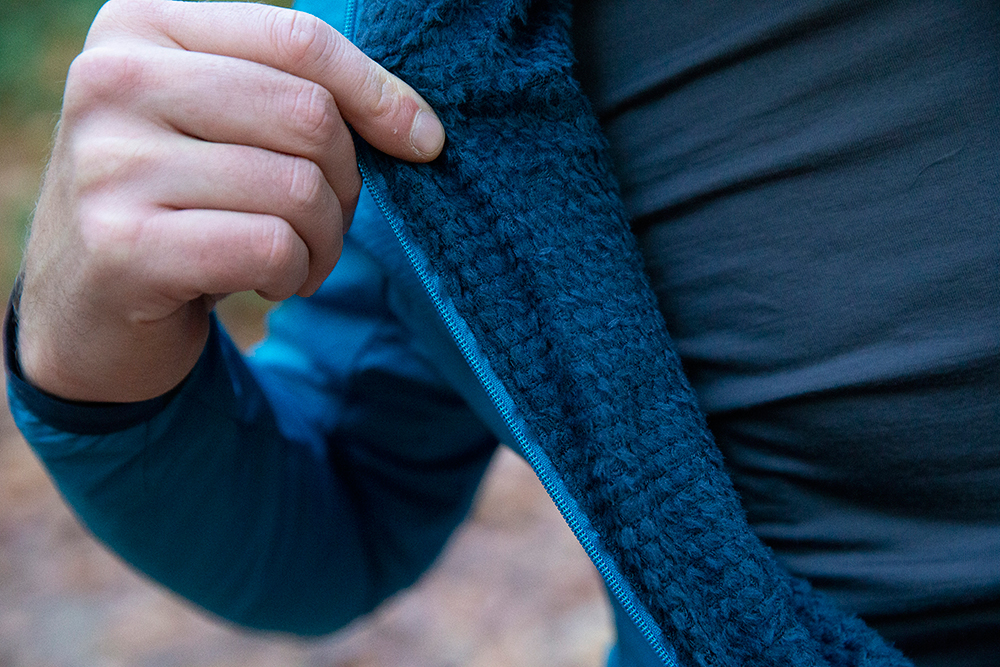 Hier, probeer maar. En alweer een windjack voor op de stapel. Zo’n thuiskomertje voor na de toertocht. Daar zat ik even mis. Dat 7 Mesh louter luxe producten produceert, daar was ik al achter gekomen bij het testen van deze regenjack. Het Freeflow jack mag dan een flinterdun windjack zijn. Slechts 150 gram zegt de weegschaal. Het jack is in de mouwen, rondom de borst en schouders gevoerd met ‘Polartec® Alpha insulation’ Een stof die voelt alsof je bij de Ikea op een tapijt bent gaan liggen. Heerlijk zacht en warm alsof je onder je dekbed kruipt.