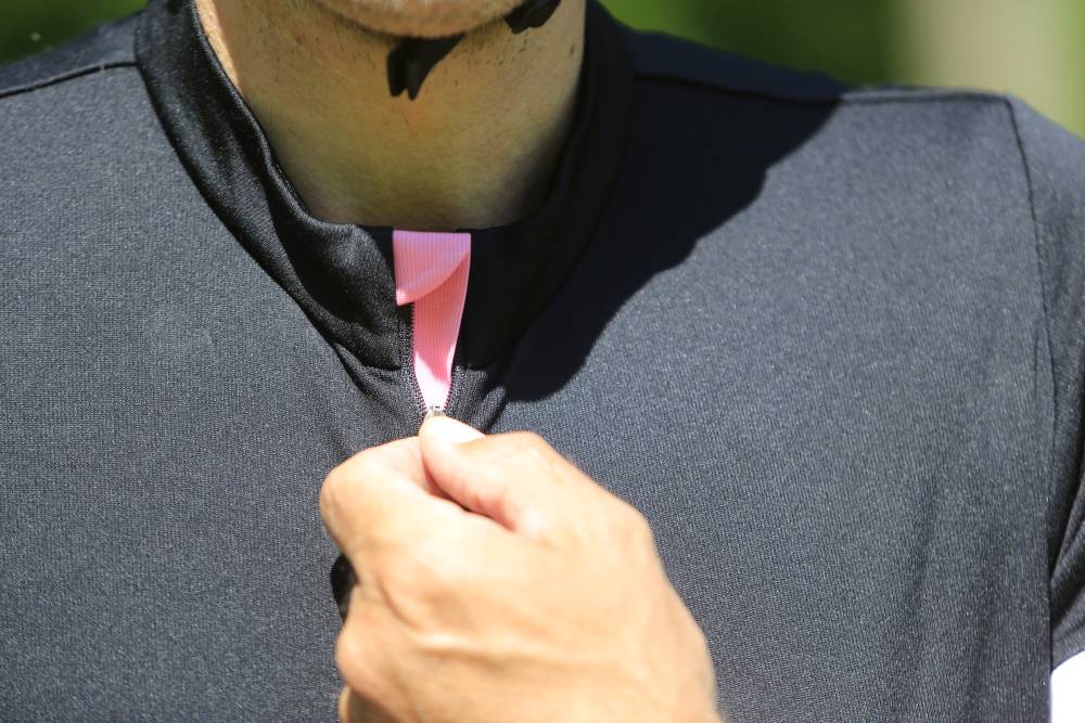 In de onderste zoom zitten 2 elastieken die je kunt aantrekken om hem strakker te zetten. Vreemd, niet echt nodig en als je ze gebruikt gaat het shirt rare vouwen vertonen. Had er wat mij betreft niet in gehoeven. Op de rechter achterzak zit nog een apart vakje met een rits en wat reflecterend materiaal. De runner van de rits zit netjes weggestopt achter een stukje stof, geen irritatie daar. Als je hem een stukje openlaat komt het roze kleurtje tevoorschijn. Alles is keurig afgewerkt, ondanks dat dit de instap-collectie betreft is er duidelijk niet bezuinigd op mooie details. Persoonlijk heb ik liever een wat strakker en elastischer shirt, maar als je dat wilt heeft Rapha natuurlijk andere keuze zat. Ben je op zoek naar een niet te strak en comfortabel shirtje, dan heb je hier een goede aan. De Core jersey is er naast deze zwarte versie ook nog in het groen, roze en blauw.