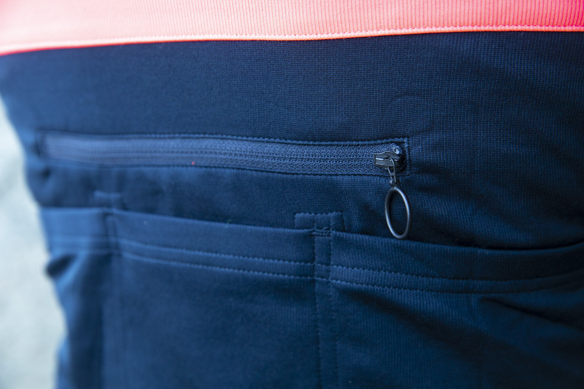 De zakken aan de zijkant vind ik persoonlijk niet zo fraai en ook nog eens overbodig, want er zitten er al drie achter op mijn shirt. Ik ben toch geen muilezel. Maar stiekem wen je toch snel aan het gemak van die zakken. Je stopt er je telefoon even in, of een reepje. En ja, ze zijn inderdaad toegankelijker dan die zakken achterop je shirt.